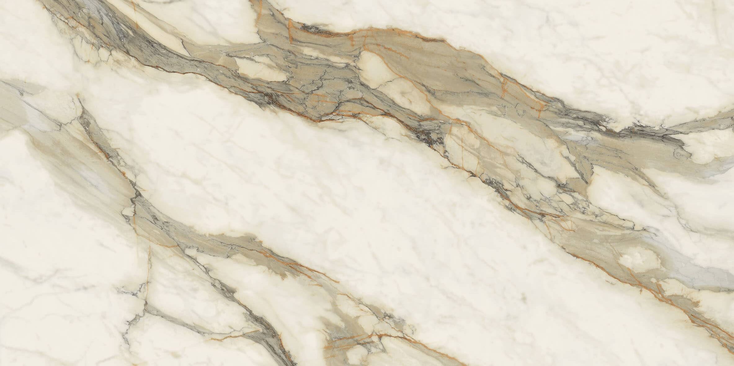 Le Calacatta Hermitage d’Infinity séduit par ses veines marquées et sa présence visuelle forte. Inspiré des marbres italiens les plus prestigieux, il crée instantanément une ambiance haut de gamme.