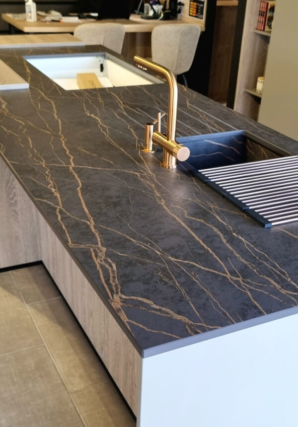 Le Dekton Laurent offre une esthétique profonde et raffinée, parfaite pour les îlots premium.