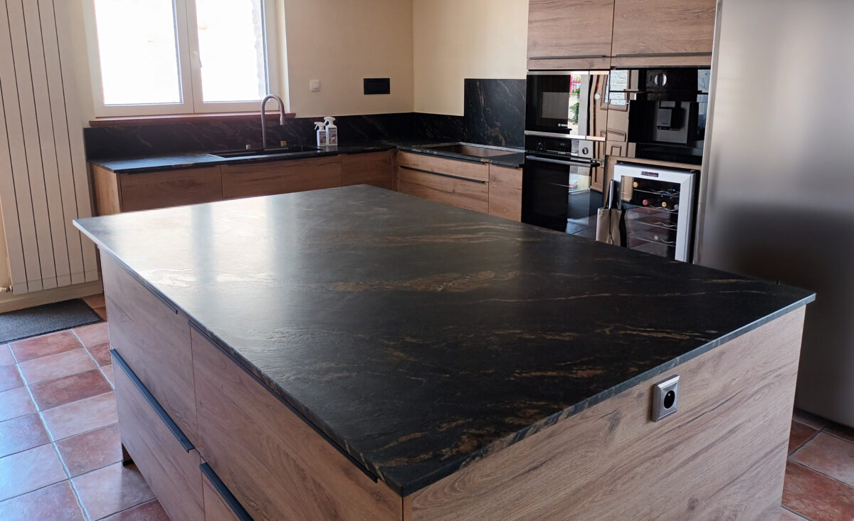 Le défi principal résidait dans la gestion d’un matériau vivant : la pierre naturelle. La zone de cuisson a été renforcée pour prévenir toute fragilité future, tout en conservant l’esthétique du granit Barroco.