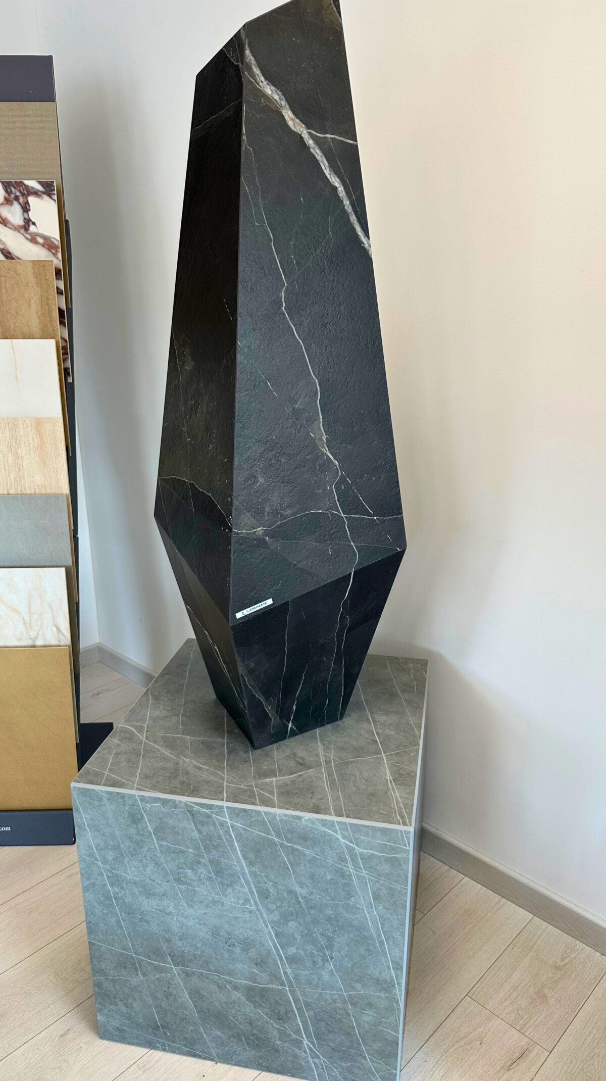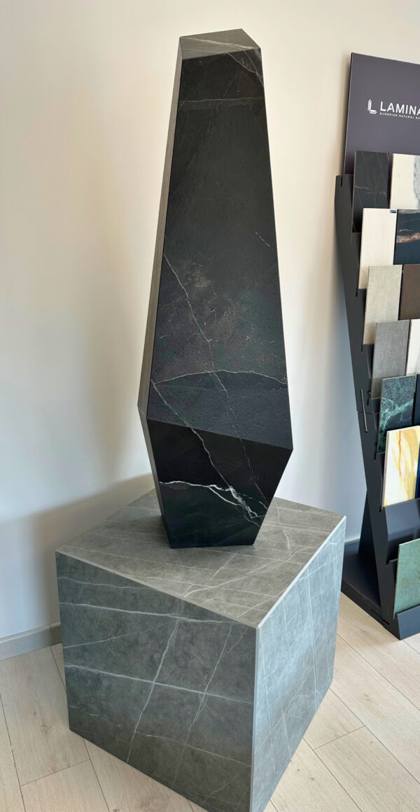 Un totem sculptural en Laminam Calacatta Black