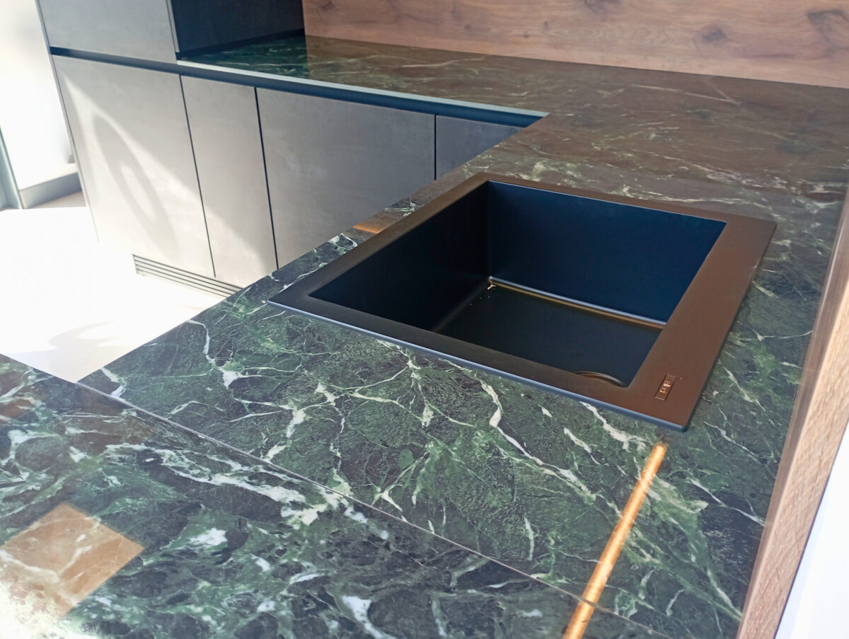Le rendu final est doux, naturel et parfaitement intégré. Le Verde France donne une identité fraîche et élégante à la cuisine.